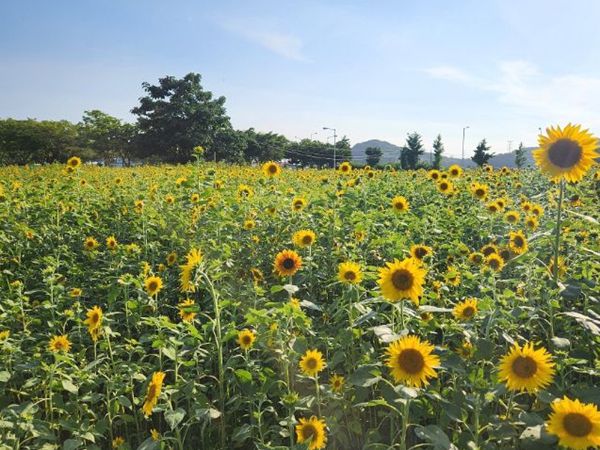황금물결로 장관을 이루고 있는 해바라기 꽃밭은 인근을 지나는 운전자 및 시민에게 아름다운 볼거리가 될 것입니다.