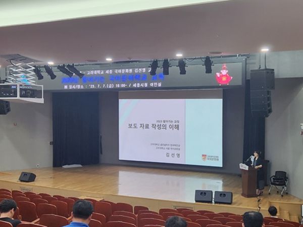 이날 김선영 고려대 세종 국어문화원 교수는 ‘올바른 보도자료 작성법’을 주제로 공무원이 직접 작성한 보도자료 사례를 훑어보며 강연에 나섰다.