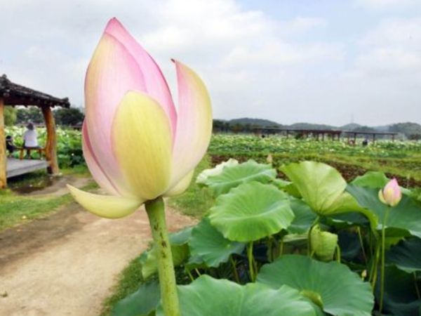 경기도 시흥시 하중동 관곡지 담장 너머에 2만 6천여평 규모에 조성돼 있는 연꽃테마파크는 연 20여 종, 수련 80여 종이 재배되고 있다.